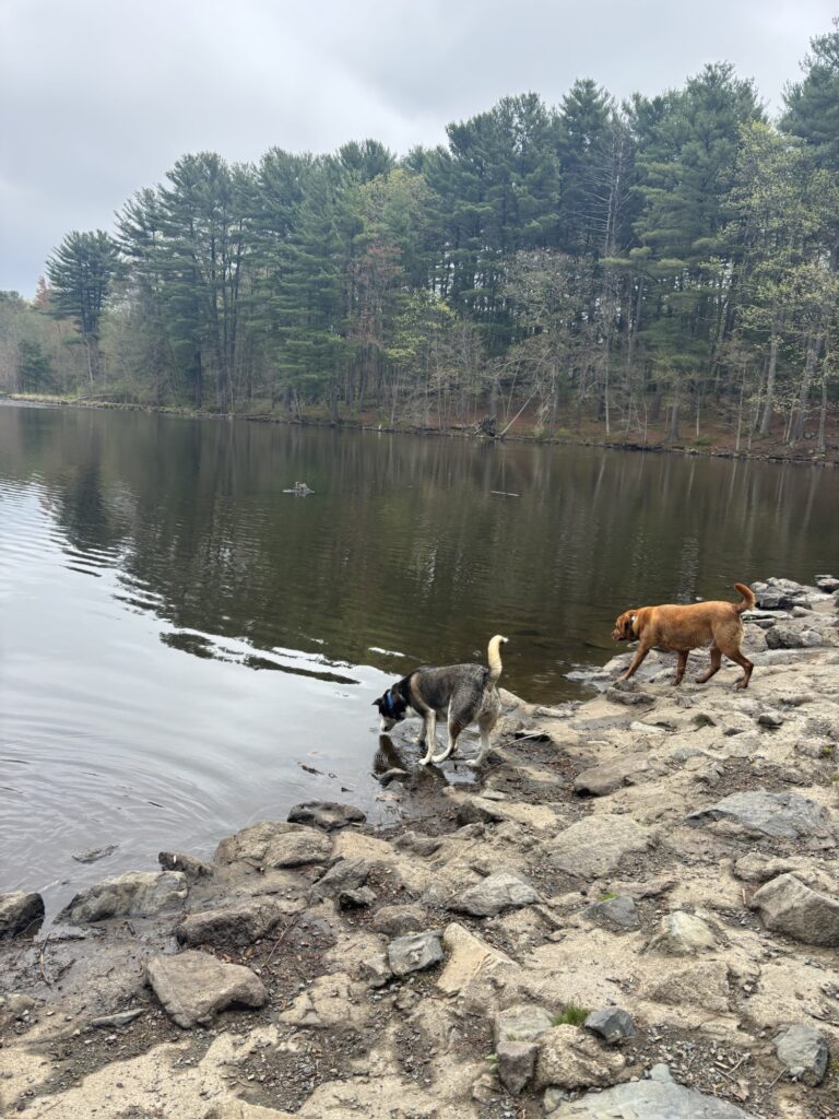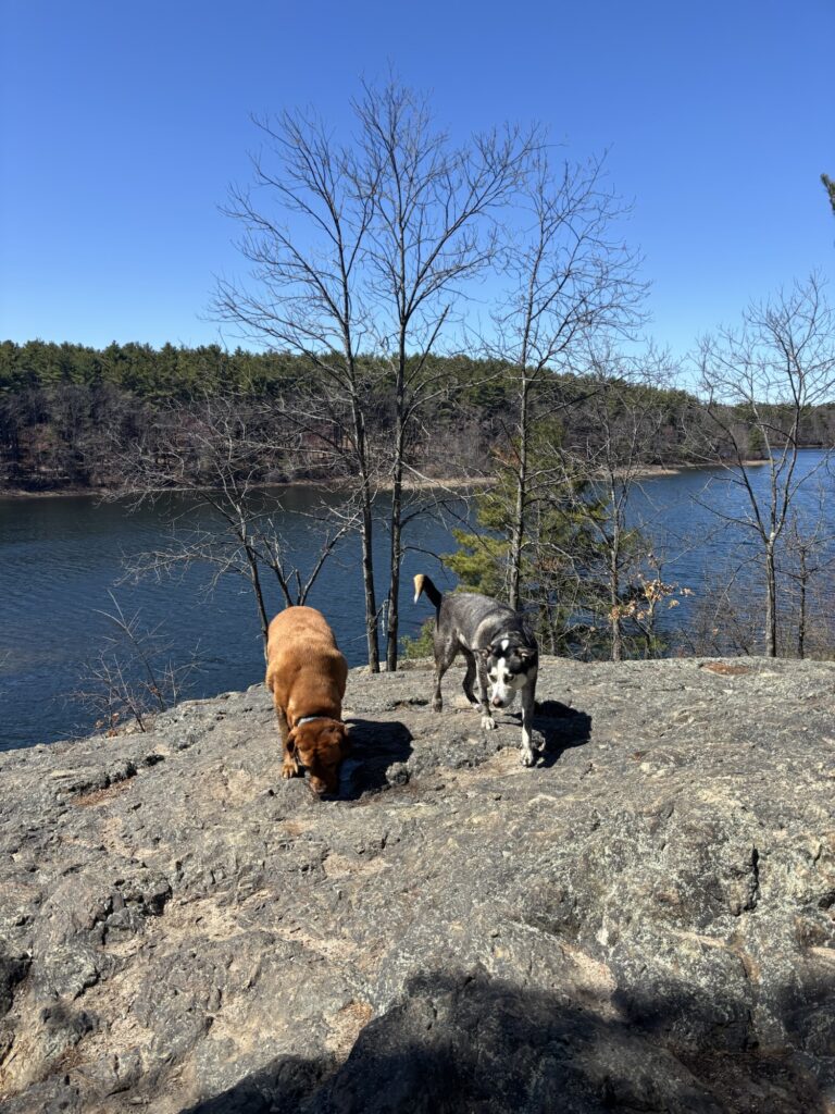 Sheepfold Dog Park is a very large, open field in Middlesex Fells Reservation. There are numerous trails surrounding the field and three large reservoirs nearby in “the Fells.” The rules are that dogs must be on-leash on the trails, but can be off leash in the field, and that no dogs or humans are allowed to swim in the reservoirs. However, I will tell you that in reality the majority of the dogs are also off leash on the trails and swim in the reservoir. The locals told me that in the summer there is a park ranger that occasionally drives down the main trail in a truck and tells people to put their dog on leash. I never came across him and we frequented Sheepfold often. This place is like dog heaven. This is absolutely Max’s favorite place to hike. Do be careful, as trails are not well labeled and it is easy to get lost in the maze of Middlesex Fells Reservation. Even just an hour here leaves Max exhausted and ready for a nap.