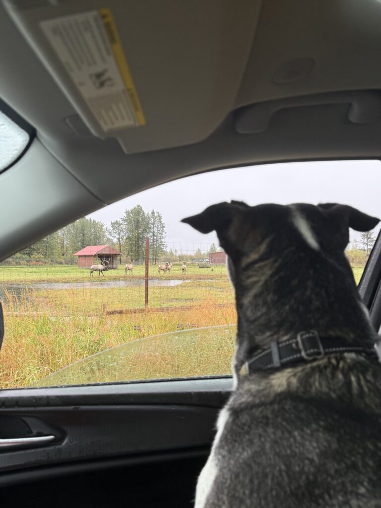 This loop is not so much a hike as a walk. Alaska Wildlife Conservation Center has a 1.5 mile loop that you can walk and stop are all the animal exhibits. The catch is that your dog has to stay in the car, but this leaves you several options. You can leave your dog in the car (with air conditioning running if its summertime) and walk the loop, you can drive to each animal enclosure and then get out and walk around, or you can drive the entire loop without ever getting out of the car and view the animals from your windows. Since we went on a rainy day, I opted to stay in the car and observe the animals from the car. I got plenty of great picture and Max had a blast hanging his head out the window and seeing/smelling all the animals. He was most impressed with the moose- they had him literally shaking in his seat. The Conservation charges $27 per person for this experience, but it was one of my favorite parts of our trip to Anchorage and Max had so much fun, even from the car window.