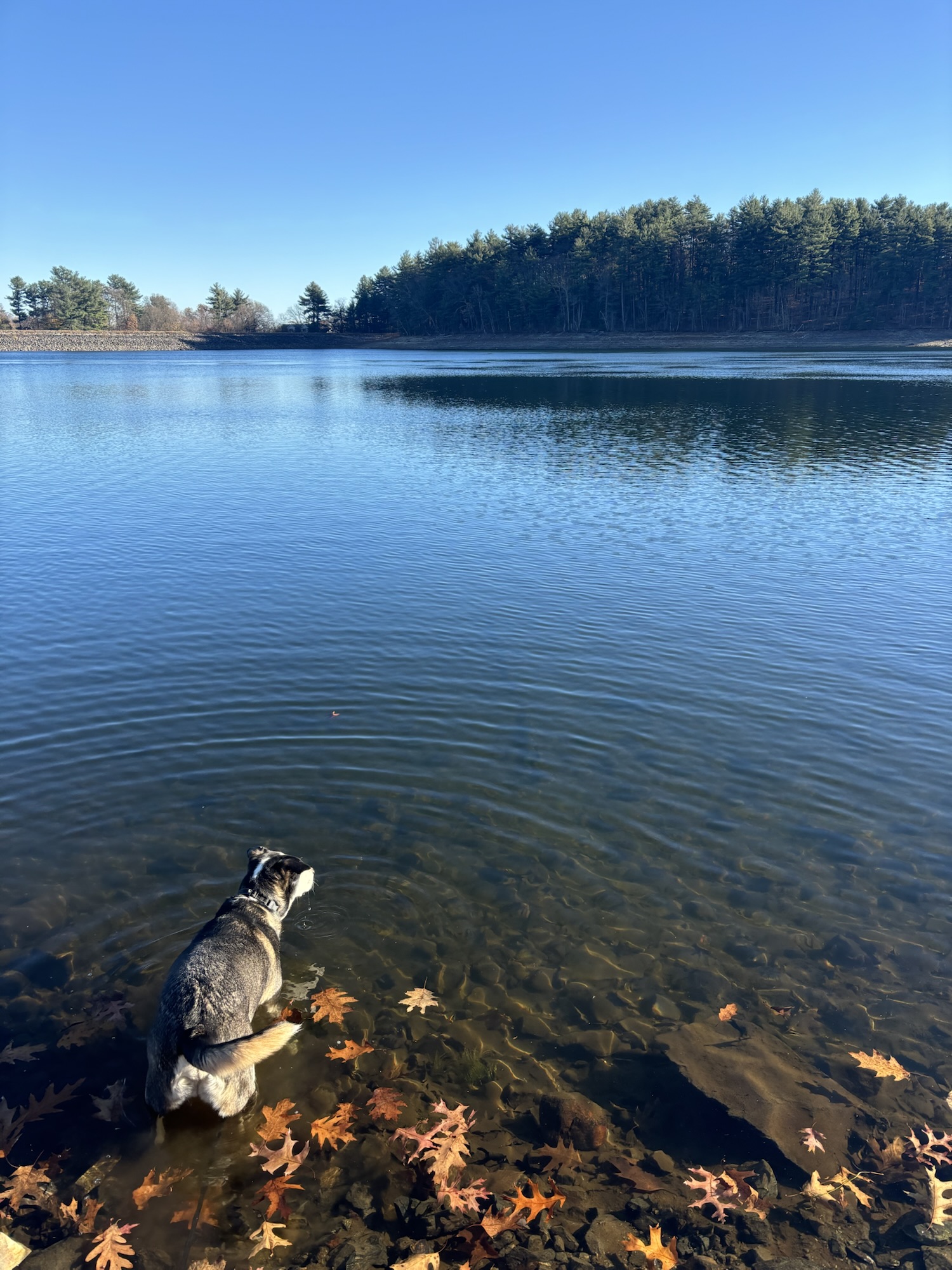 Weir Hill is a 2.5 mile loop trail that offers great views of Lake Cochichewick. There is a large, free parking lot at the base of the trail. It is a popular hiking spot and it is common to encounter many other dogs along the trail. I have only ever seen leashed dogs here. Max’s favorite part is cooling off in the lake.
