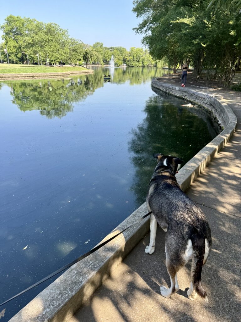 Start with a walk around Centennial Park. The park offers 132 acres, including a one mile path around Lake Watauga. The iconic Parthenon building is located here, as well as a dog park and beautiful flowers and trees all along the park. We passed many other leashed dogs on our walk. The parking lot on the outskirts of the park is free and convenient.