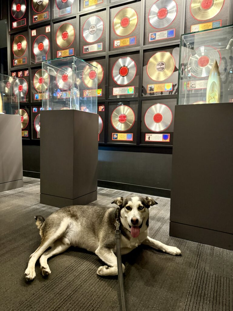 The Johnny Cash Museum allows well-behaved, leashed dogs inside the museum and gift shop. Tickets are $28 per person and dogs are free. We parked about a block away in a city parking garage that we paid around $15 for two hours. Max’s favorite part of the museum was that it was air conditioned and all the pets he got from people in the gift shop.