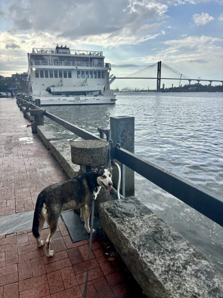 One of Savannah’s most iconic spots, Forsyth Park was established in 1841 and is rich with history and charm. There’s free street parking around the perimeter, and the park’s famous central fountain is a must-see. Max enjoyed sniffing around while I took in the beautiful scenery.