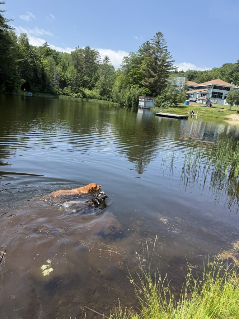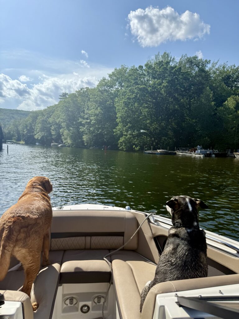 Experience Squam offers boat excursions tailored to your needs. The prices are reasonable and our boat driver, Cindy, was full of knowledge about Squam Lake and the surrounding area. After all, she has been giving boat excursions for over 20 years! I signed up for a dog-friendly boat excursion for myself, my dog Max, and my brother’s dog Bowie. It was Bowie’s birthday week and neither of the boys have been on a boat before, so we signed up for the minimum 1.5 hours just incase they did not enjoy it. Now I know to book longer next time because the dogs had a BLAST. Cindy took them to a small island where they were able to run the trail around it and swim off the shores of it. It was about a 20 minute walk around the entire island with plenty of rocks and docks for the boys to jump into the water. I am pro life vest- Max wears one every time we go kayaking, but this particular day was almost 100 degrees out and I was worried about the dogs overheating in the sun, so in my risk-benefit analysis I decided to forego the life jackets. This was the best day of their lives. They had free reign of the boat and absolutely loved sitting up front with the wind in their face. I highly recommend this experience.