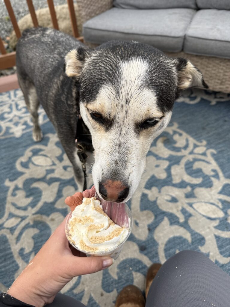 Moose Crossing is in Sterling, a town over from Kenai. This stop is a great halfway point between Kenai Wildlife Refuge and Kenai, making it a perfect pit stop heading back from a hike. Moose Crossing is a small food stand with an attached, covered gazebo that has patio seating, dining tables, games, and more. The menu offers coffee, ice cream, smoothies, bakery items, and breakfast. They also have pup cups for dogs! I got a smoothie and Max enjoyed his pup cup before heading back to Kenai.