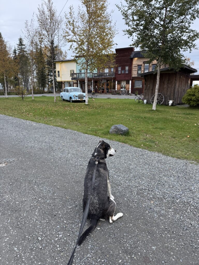 Diamond M Ranch in Kenai is a central location for everything Kenai has to offer. Max and I stayed in their dog-friendly “bunkhouse.” The spacious studio apartment boasted a large second floor deck that looked out into beautiful trees lush with fall foliage. Below, fluffy brown bunnies hopped around the grounds. This was Max’s favorite spot. Whenever we were at the apartment, he was out on the deck watching for people, birds, and bunnies. The ranch offers options for cabins, rooms, tent sights, and RV sites. There is plenty of space on the property to walk your dog around and explore. The best part is the petting farm that sits on the edge of the property. I would walk Max by it every morning and he would sit and watch the pigs, ostriches, turkeys, goats, and bunnies before heading back to his favorite spot on the deck.