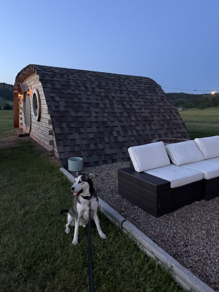 Only about 20 minutes away from Rapid City is Battlecreek Camping Resort, where you have many glamping options. You can stay in a tent, yurt, or hobbit house/hygge! We stayed in an adorable little hobbit house. It has air conditioning/heating, and a cozy bed and living room space. Outside, you have your own firepit surrounded by string lights. A few feet away is the Bathroom House, which has 5 individual bathrooms that each have its own shower. Also on site is a very small, but fenced in dog area and a cool spaceship you can check out. We really enjoyed a peaceful, quiet glamping experience here. You can check them out on instagram @battlecreekcampingresort