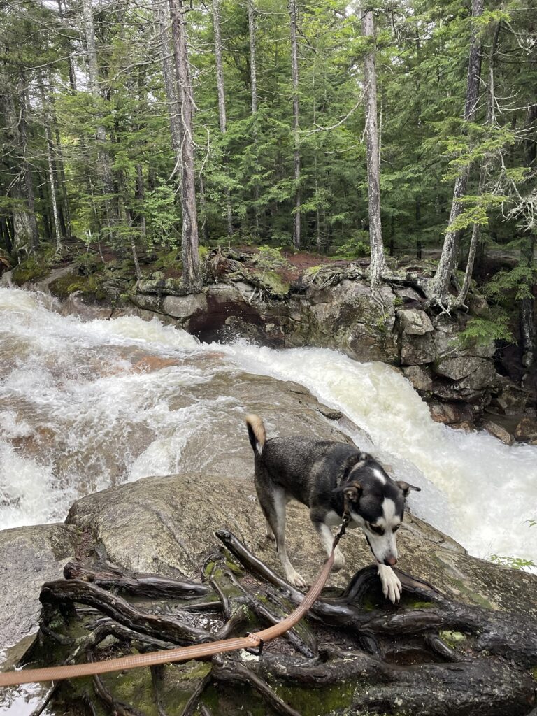 Franconia Notch State Park is beautiful all year, but the best time to go is in the fall to see the foliage! I stayed in the White Mountains in the summer and took Max for a hike up Artist Bluff Trail in Franconia Notch State Park. This trail is extremely popular, crowded, and touristy in the fall to the point you will have to wait in line on the trail to get a picture at the top. We went in the summertime and there were no crowds. This trail is a 1.4 mile loop. The short stretch of trail just before the summit is a very steep scramble up large rocks. It was difficult for me to climb and also hold the leash in one hand. I was nervous that it was too steep for Max but he surprised me and handled the climb better than I did. Another lovely hike is the Basin Cascade Trail. This 2.5 mile out and back trail follows a river with multiple waterfalls and pools. There are plenty of opportunities for your dog to get a drink or take a swim. However, be careful when there have recently been heavy rains, as the river can really pick up speed. People have drowned here.