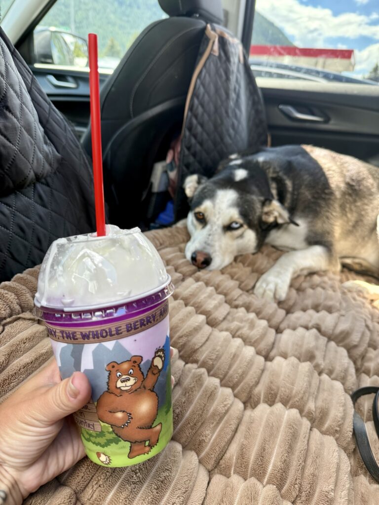 The Huckleberry Patch in Hungry Horse is a must stop. First of all, behind the store they have a dog park! How cool is that? The store sells souvenirs, huckleberry flavored just about anything, and sweets. My favorite purchase here was peanut butter and huckleberry fudge! Attached is also a cafe called Patch’s Grill with both indoor and outdoor seating. I got a huckleberry milkshake to go and split it with Max.