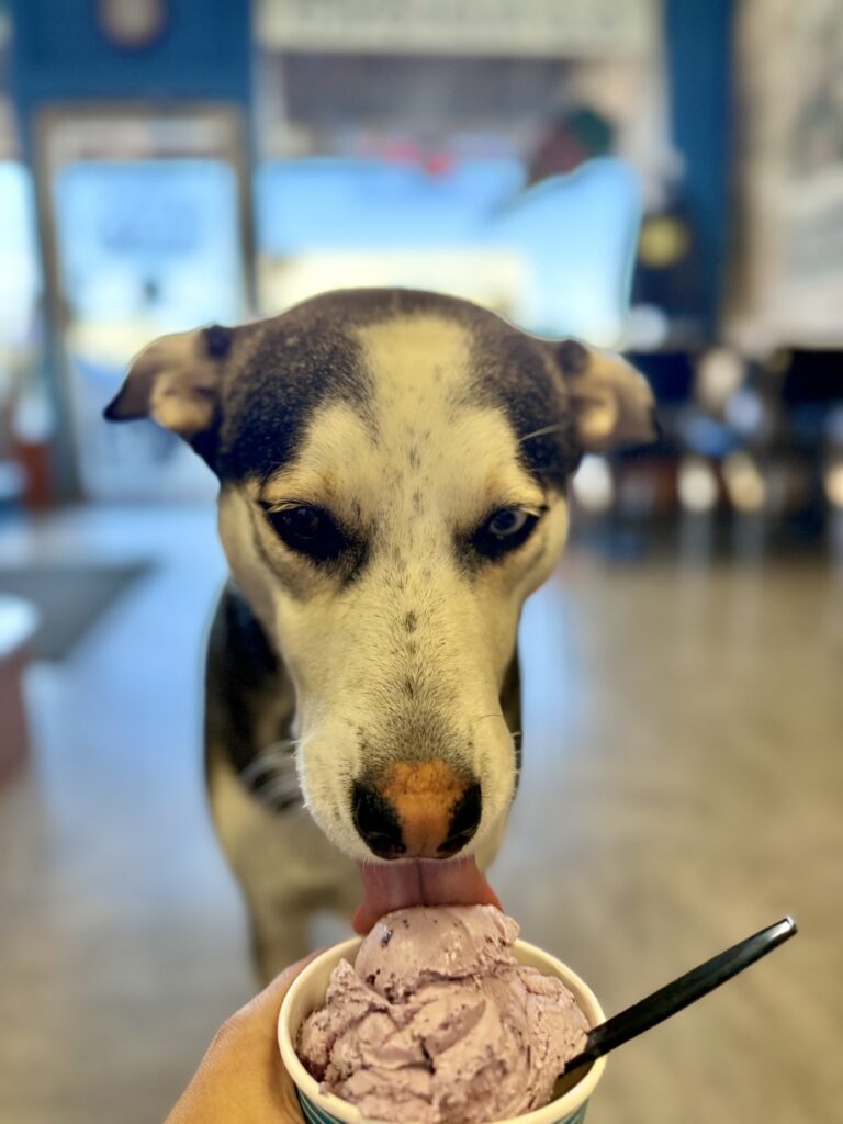 For dessert, head downtown to Norm’s Soda Fountain. Originally, I planned to go to Sweet Peaks but they had a line out the door and were out of huckleberry ice cream, Max’s favorite. Thankfully, Norm’s was only a few blocks down. Unlike Sweet Peaks, dogs are allowed inside Norm’s while you order. I got Max a cup of huckleberry ice cream and a sundae for myself. The service and ice cream was great.