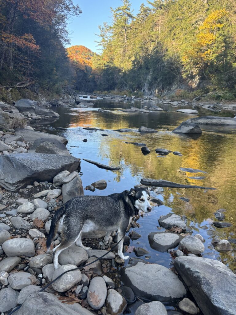 Chesterfield Gorge State Park is a small state park located in southern New Hampshire, not far from the Vermont border. It offers a one mile loop trail along the Wilde Brook where you can view rock formations, brooks, waterfalls, and cascades. Dogs are allowed on leash. Max loved hopping around on the rocks in the brook and swimming to cool off. The trail is mostly shaded as well, making this an ideal summer hike where your dog can keep cool. Parking and entry are free. We encountered many other dogs here, all on leash.