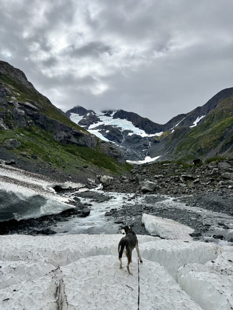 Chugach National Forest is only a 45 minute drive from Anchorage and that drive is down a beautiful scenic byway with many optional scenic outlooks where you can stop and stretch your legs or take pictures. It is the second largest national forest in the nation. The most popular trail is Portage Pass Trail, which has mountain and waterfall views along a trail leading to Portage Glacier and its lake. We did this trail in September in the pouring rain, so I did not have as much fun or have as good views as if we had hiked it in the summer. Max, however, didn’t seem to mind the rain or obscured views and had a blast. You can check out other dog-friendly hikes in Chugach National Forest on my blog “5 dog-friendly trails in Chugach National Forest.”