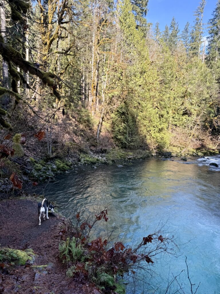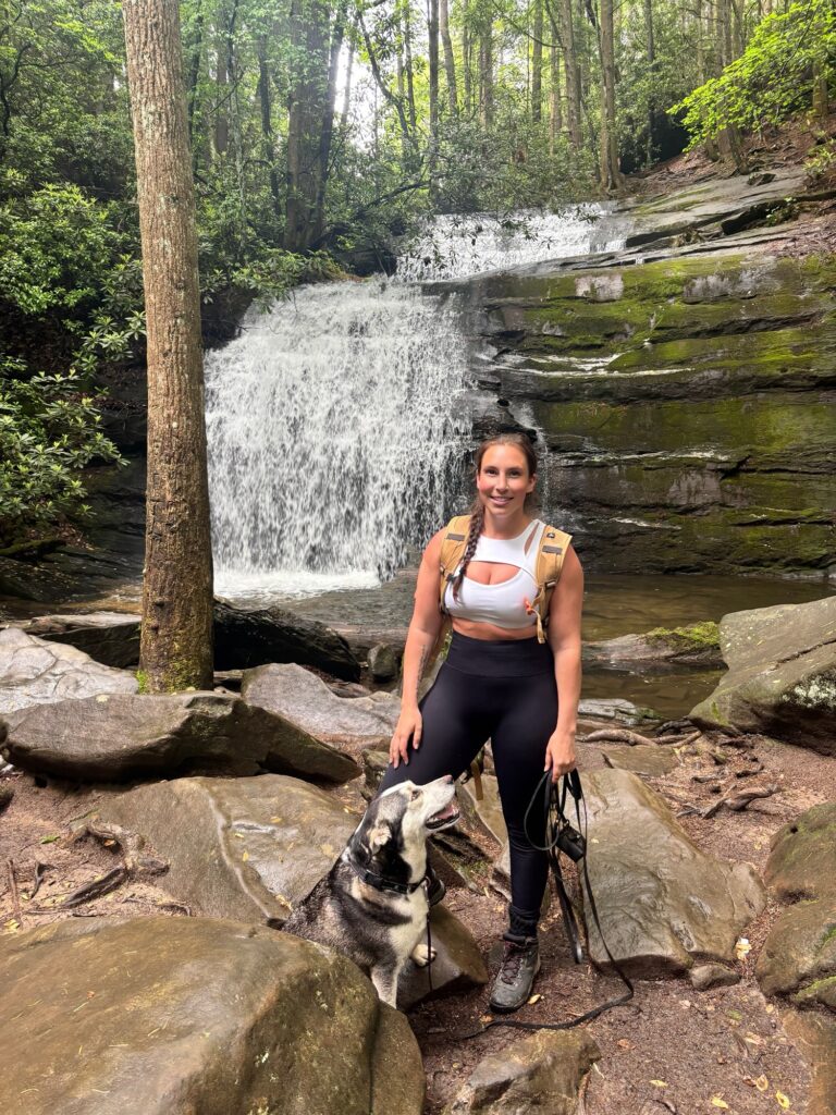 Local to Blue Ridge, Georgia is the Chattahoochee-Oconee National Forest. This National Forest is packed with lush terrain, rivers, and waterfalls. Parking is typically free, but many of the roads leading up to the trailheads are forest roads that are dirt, rocky, and unpaved. Some of these roads I would not attempt without an SUV or tuck. Others require crossing a stream in your vehicle. I would highly recommend researching any trail you are going to hike beforehand so that you are aware of these challenges ahead of time. Some of the dog-friendly trails we hiked in Chattahoochee-Oconee National Forest are Fall Branch Falls Trail, Toccoa Swinging Bridge, Lake Blue Ridge Loop, Long Creek Falls, and Helton Creek Falls. I mostly chose waterfalls because we were hiking in the summertime, and I wanted Max to have the option to swim and cool off in water while on the trail.