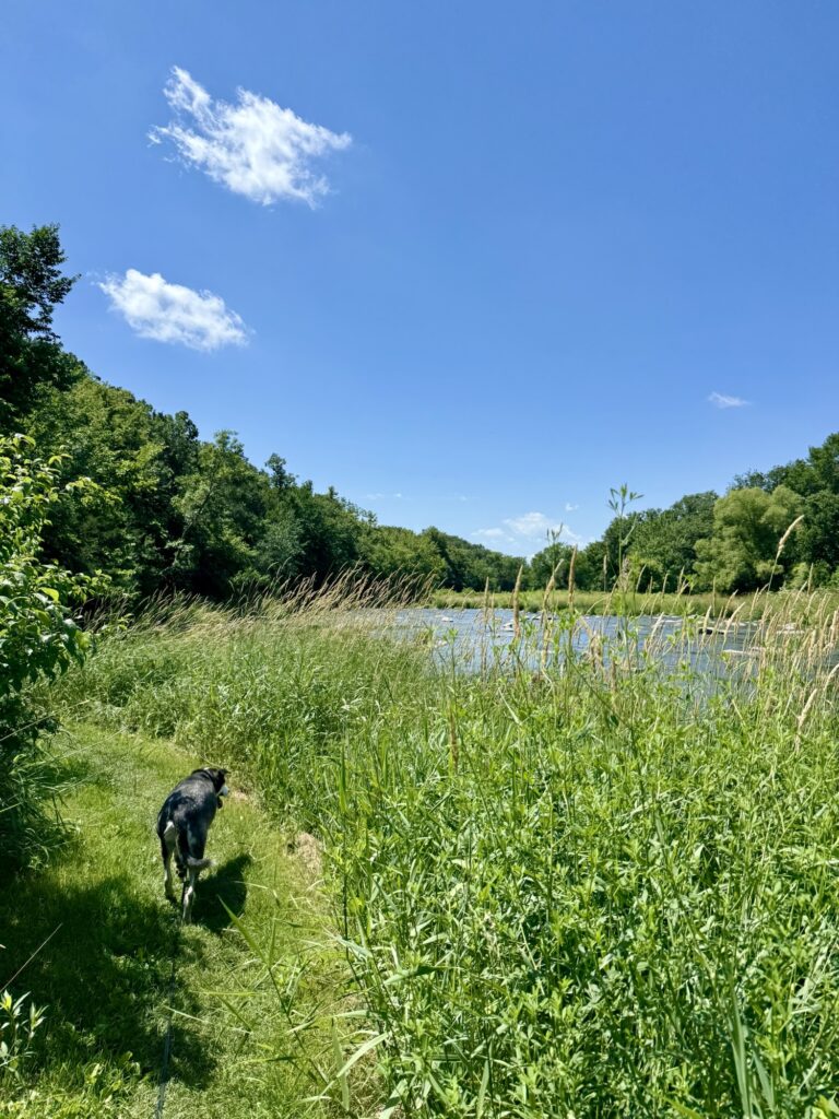 Palisades State Park in South Dakota offers camping, hiking, and fishing. The entry fee was $15 for an out of state vehicle and $10 for in state. I noticed there were many dog-friendly cabins throughout the park and we passed many dogs on leashes. They have recently changed where the entrance is, so the signs pointing to the park still lead to the old entrance, not the new one. For a $15 entry fee, which is one of the higher fees I have paid for a state park, I expected better signage. There are signs at the trailheads, but then once on the trail you are on your own. I took “wrong turn” and went down “wrong trails” multiple times. It was frustrating that the trails weren’t better marked. Split Rock Creek Trail is a 1.5 mile out and back trail that follows the creek. Parts of the trail were confusing and other parts were overgrown. Max didn’t have as much access to the creek as I thought he would because there was very tall brush between the creek and the trail. In my opinion, some trail markers would be the easiest, cheapest way to really improve this state park.