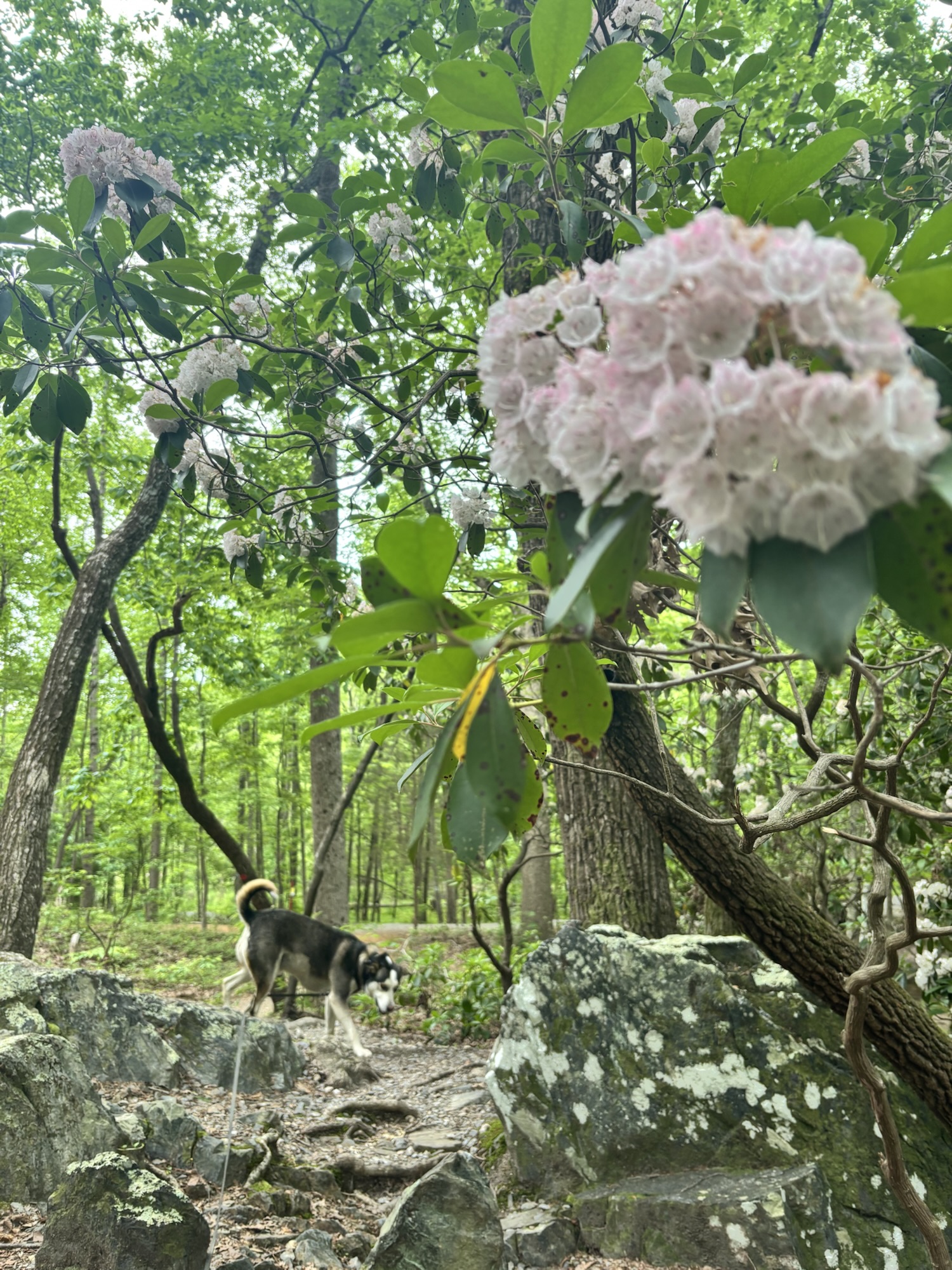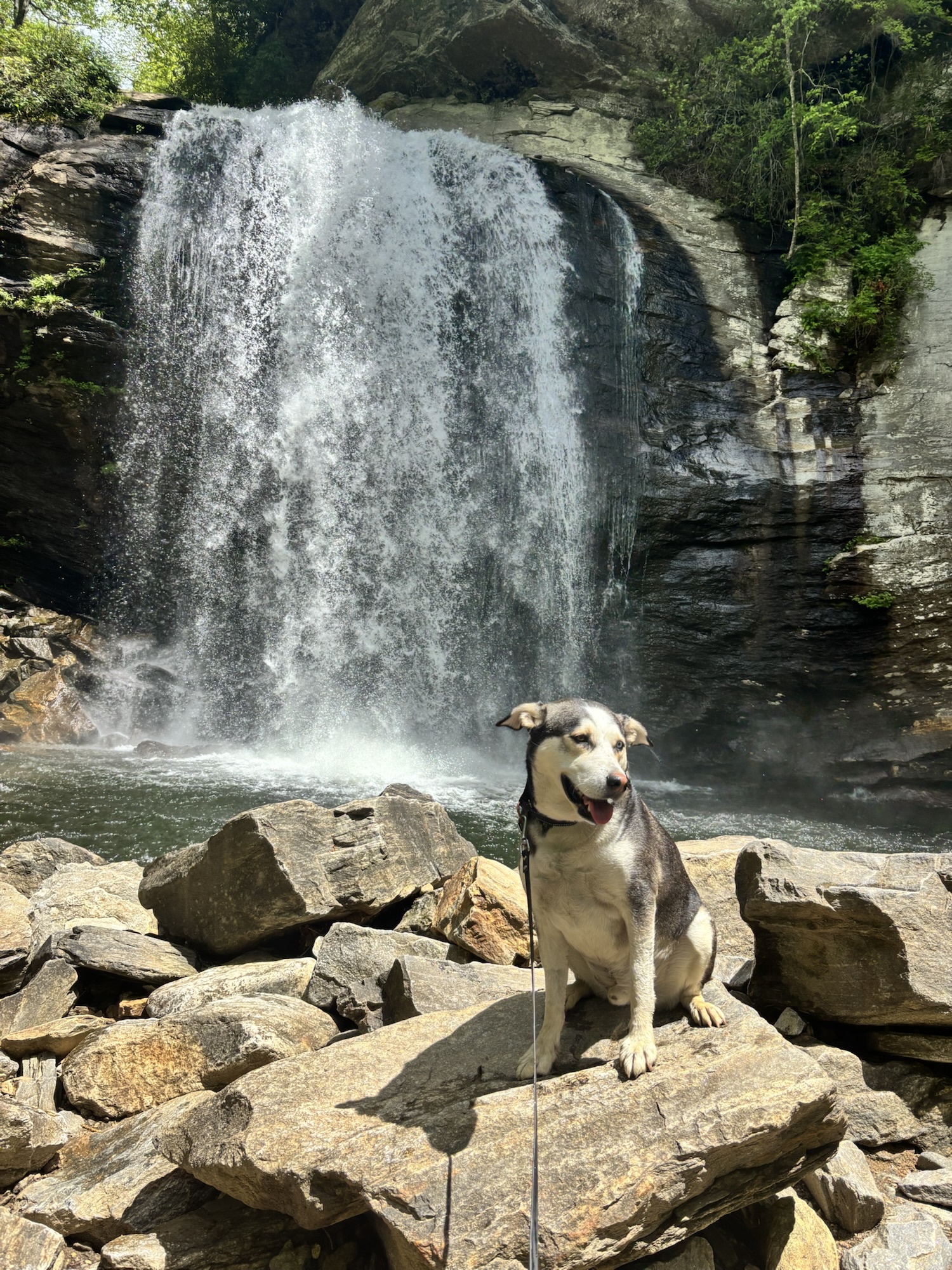 Pisgah National Forest is your hub for waterfall hikes! We visited North Carolina in the summer so it was important to me that Max could cool off in water during our hikes. We did the Graveyard Upper Falls Trail, Catawba Falls River Trail, Moore Cove Falls Trail, and the short walk down to see the Looking Glass Waterfall. Our favorite was the Moore Cove Falls, where you could actually walk behind the waterfall!